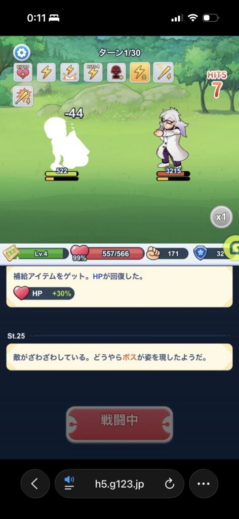 各ステージ毎に、最大テキスト数が設けられており、上限に達するとボス戦に突入します。ボス戦に到達するまでに、どれだけステータスを上げるか、またはスキルを成長させるかが重要な要素となっています。