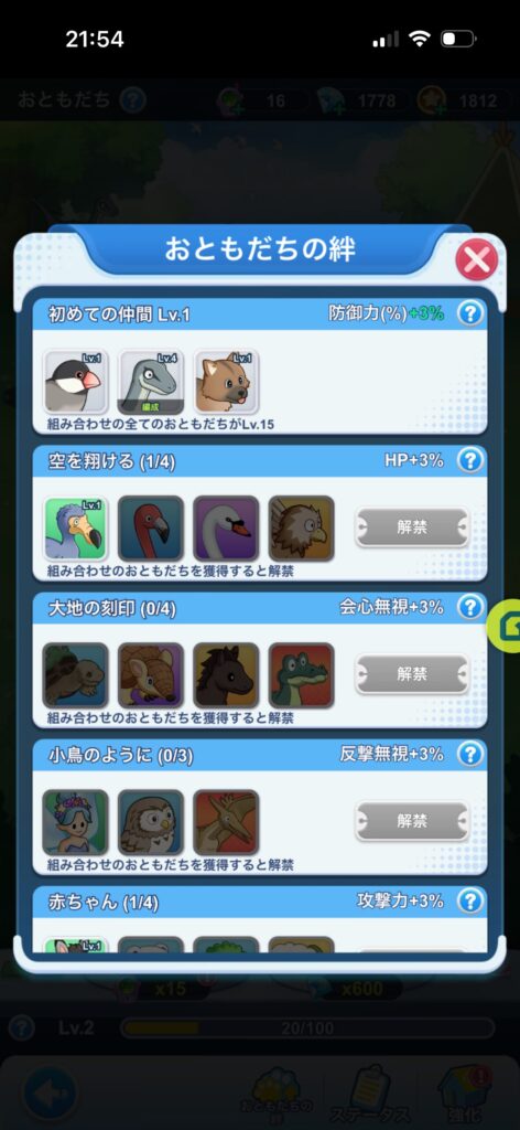 | おともだち | 3章クリア | 一緒に戦ってくれる味方を入手できる |