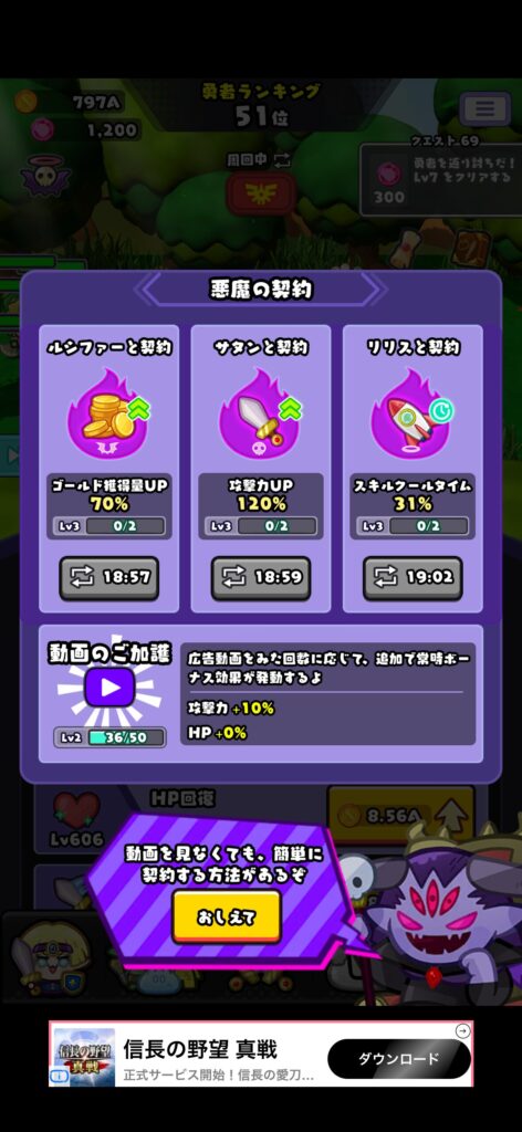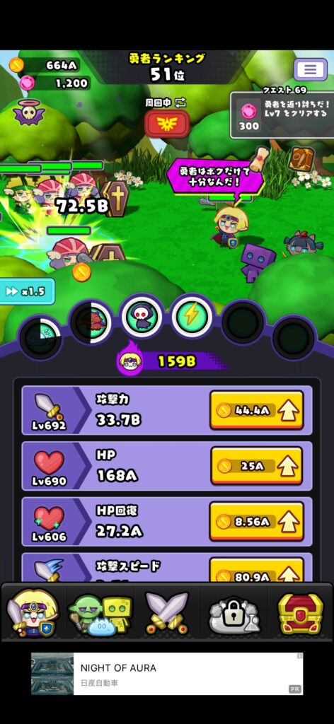 勇者のパラメータ強化に必須のゴールド獲得量が増加。