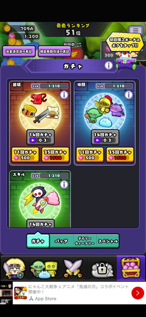 - 装備ガチャ