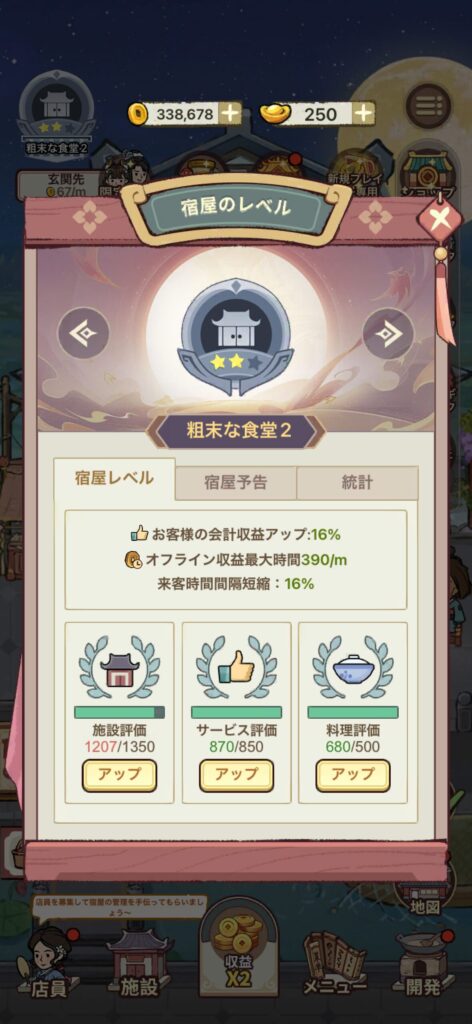 この3点を繰り返すだけで宿屋を昇格させることができます。