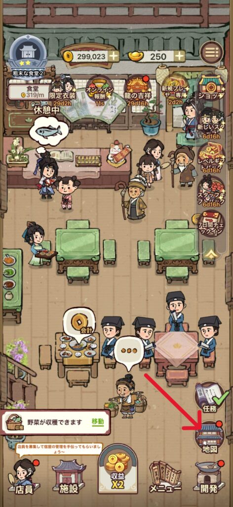 特に、店員を雇用するためには元玉が600必要です。筆者は、ひたすら以下の作業を繰り返しました。
