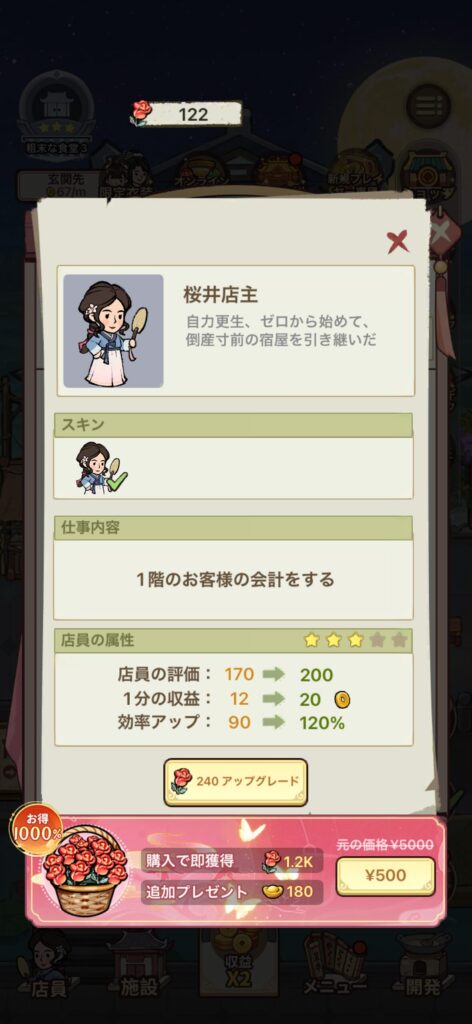 - 店員のアップグレード(バラが必要)