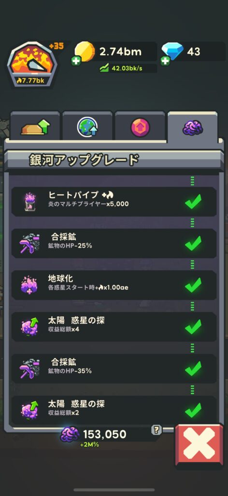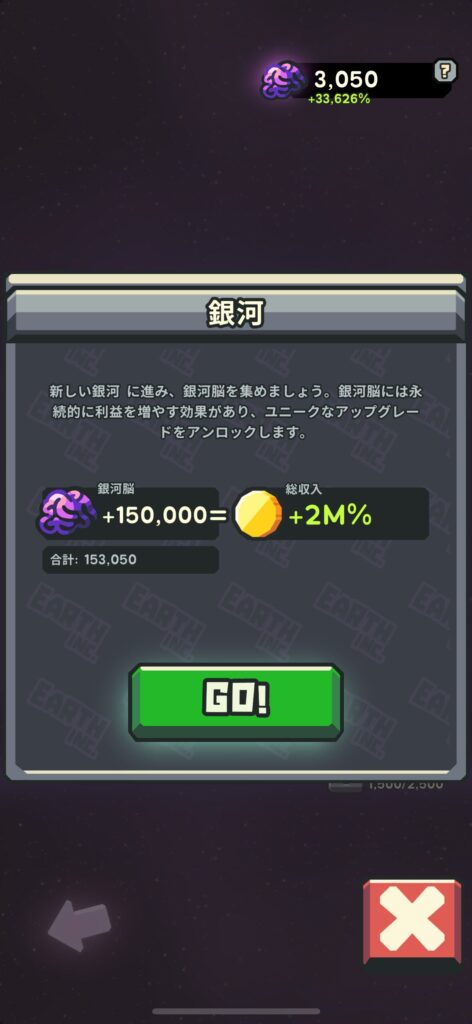 4つ目の惑星を攻略中に「別銀河」に移動できるようになり、収益が一気に増加しました。