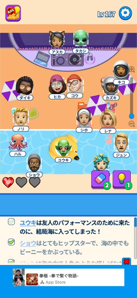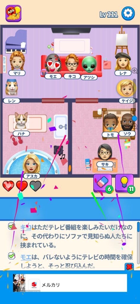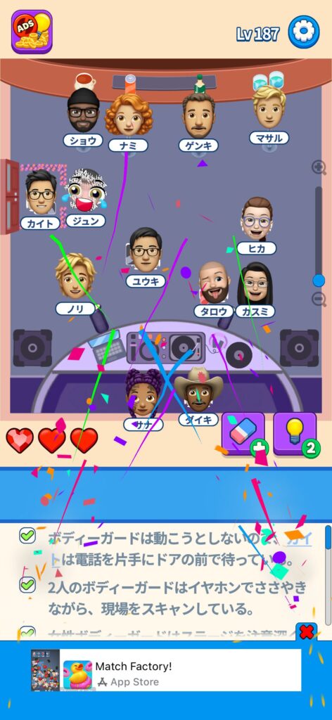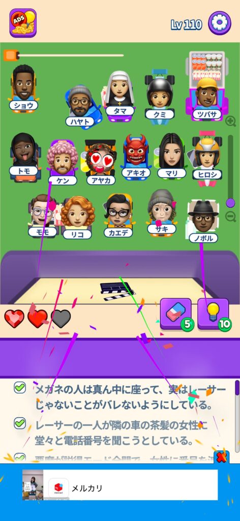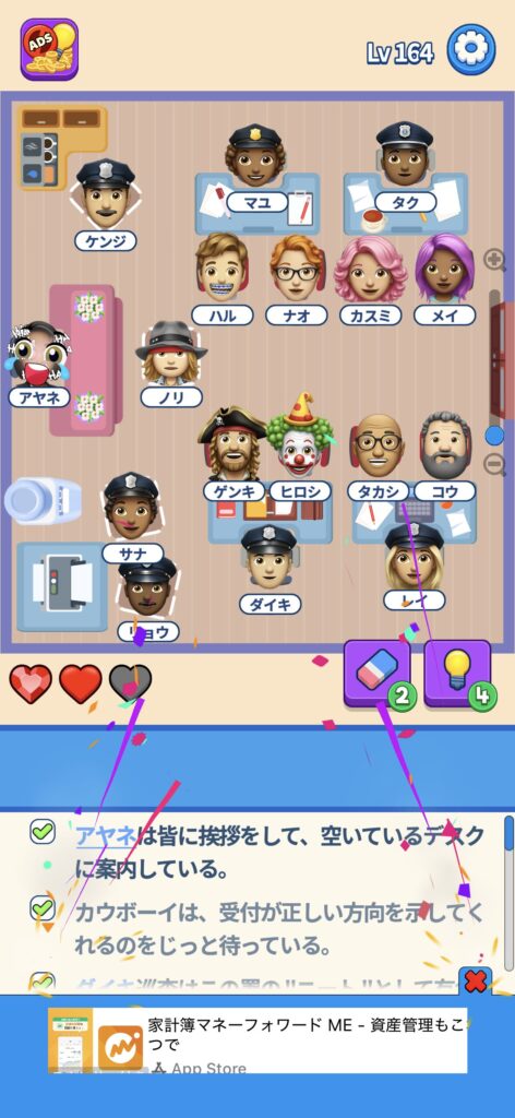 本記事ではゲームアプリ案件の「That’s My Seat」のLv.101~Lv.200のクリア画像をまとめていく予定です。