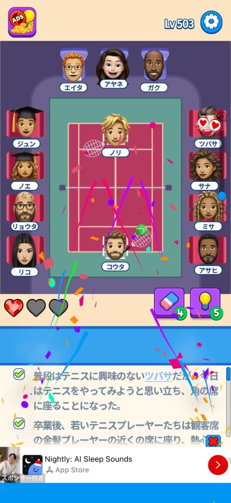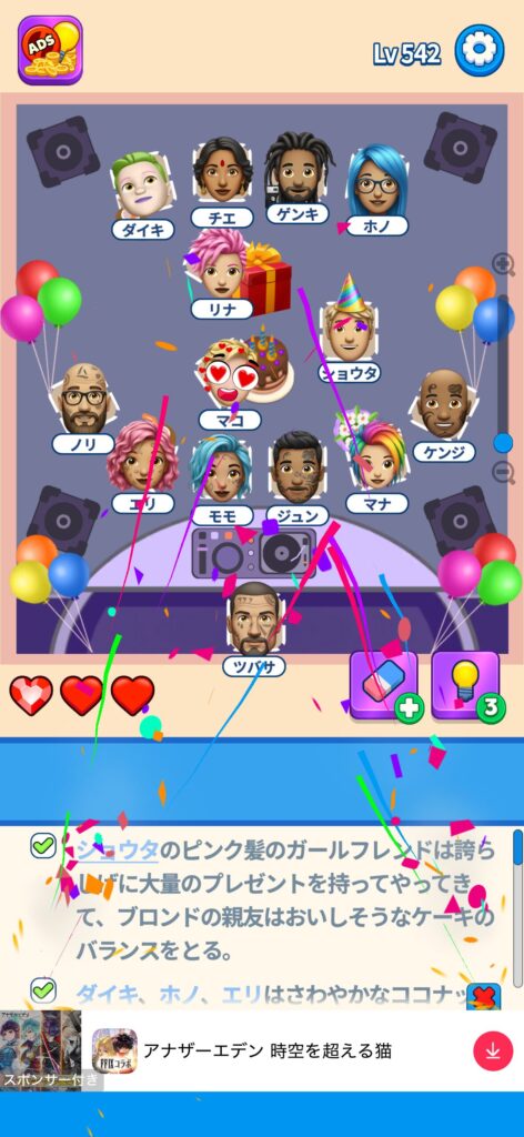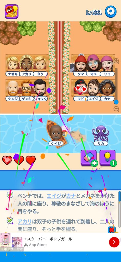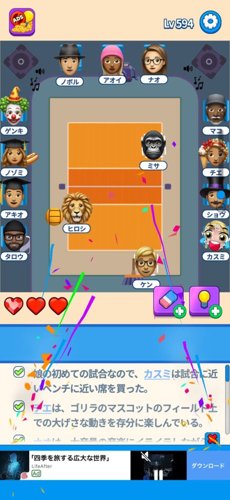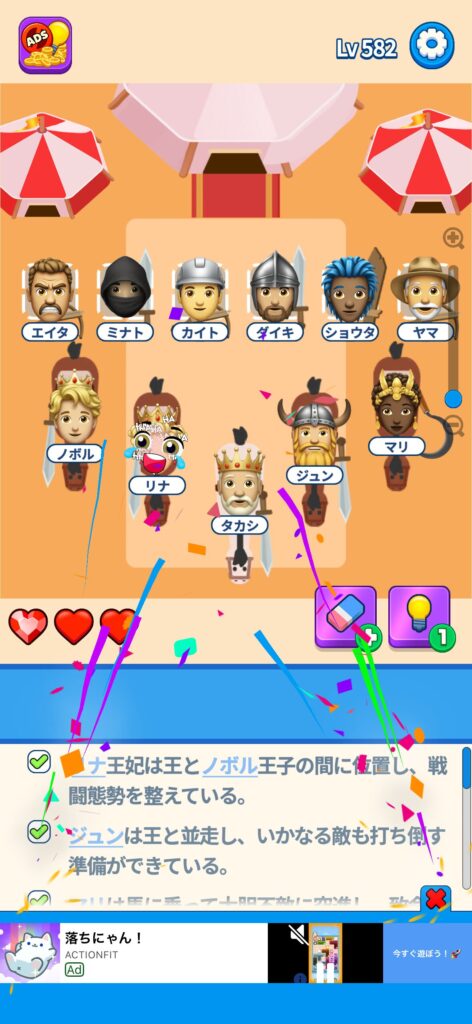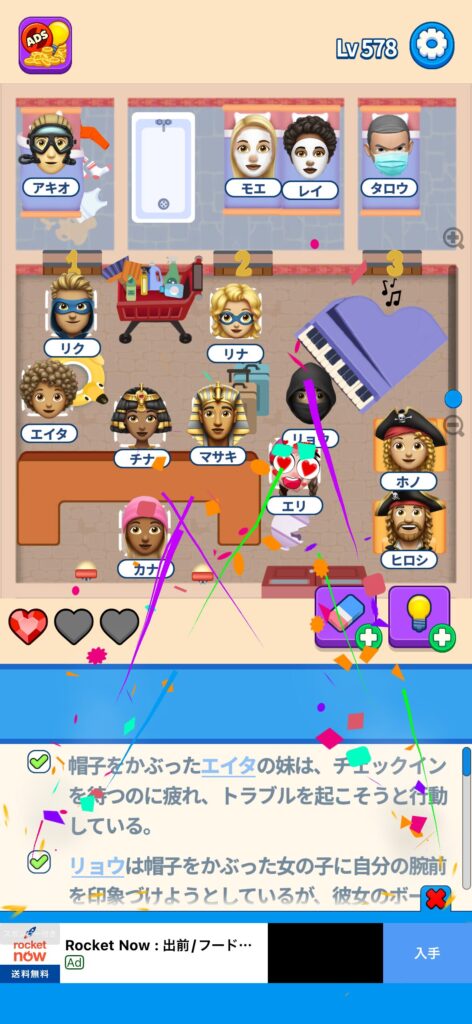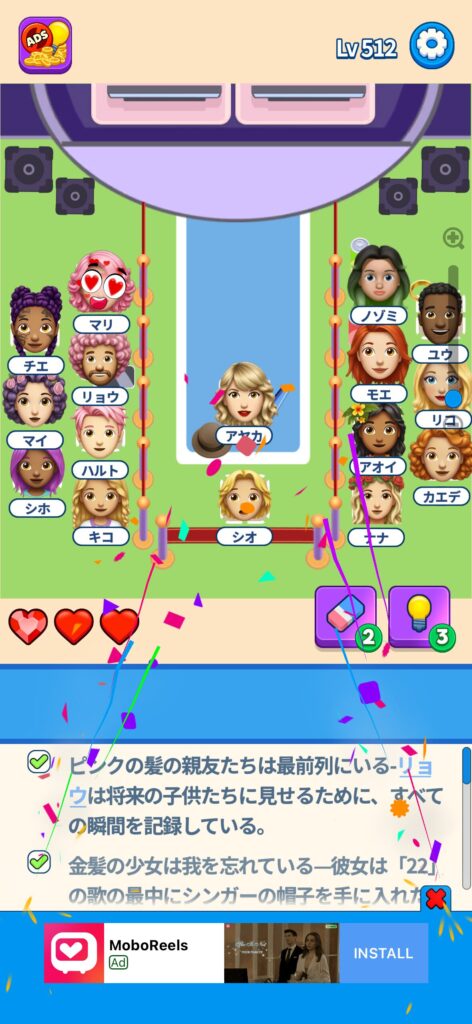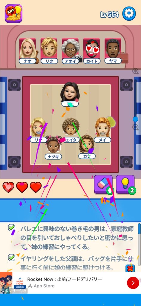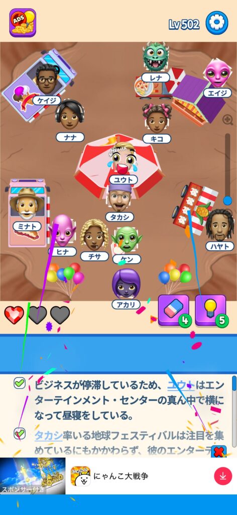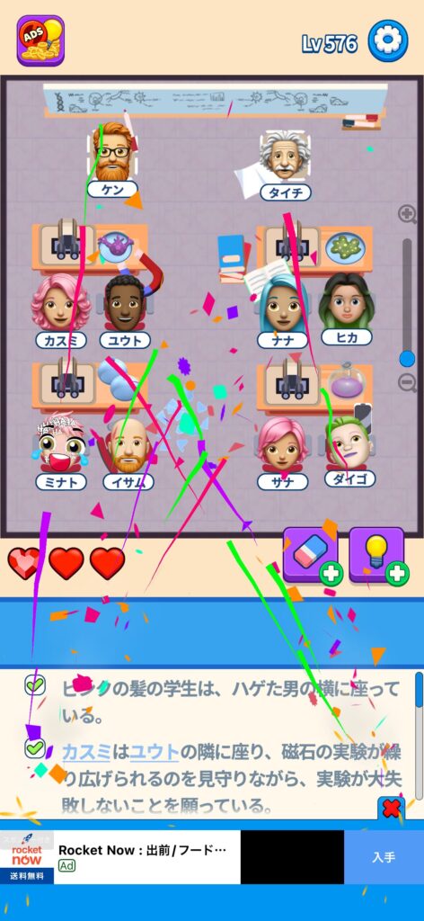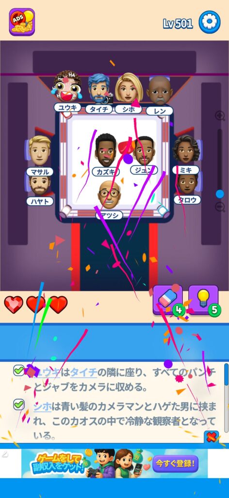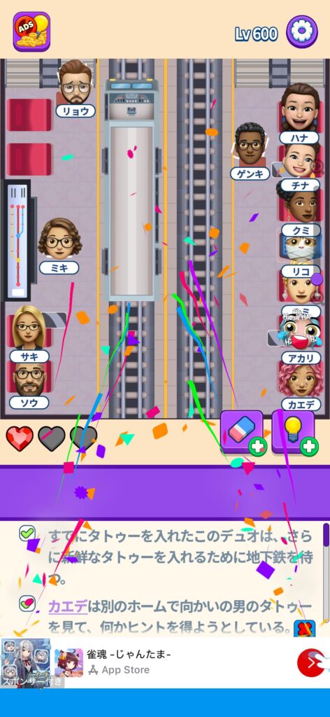 事ではゲームアプリ案件の「That’s My Seat」のLv.501~Lv.600のクリア画像をまとめています。