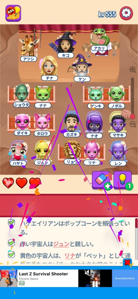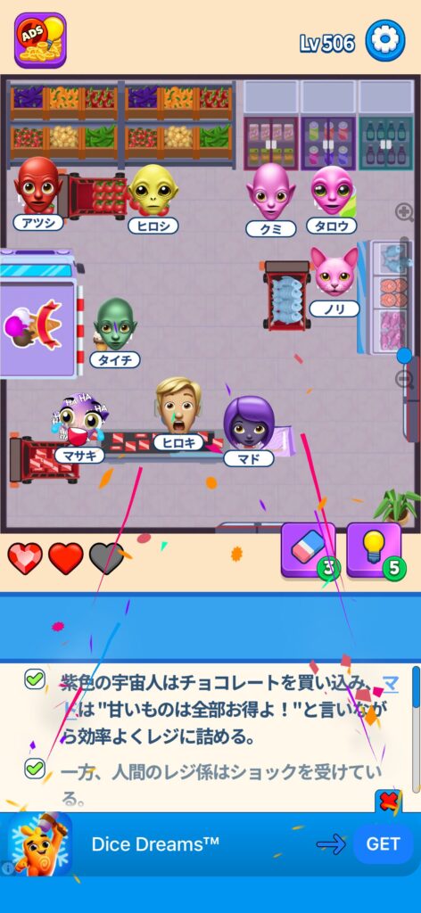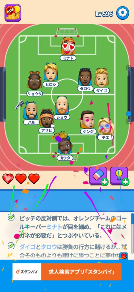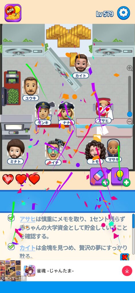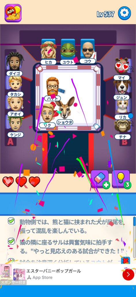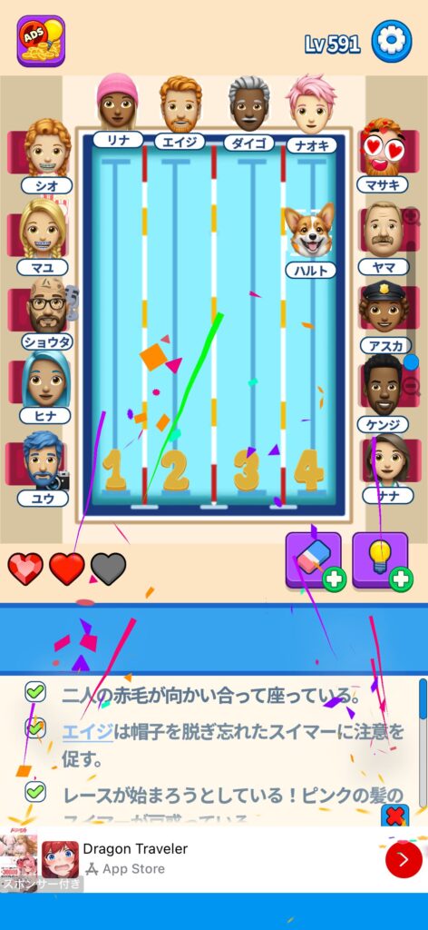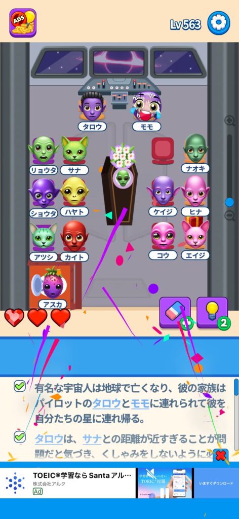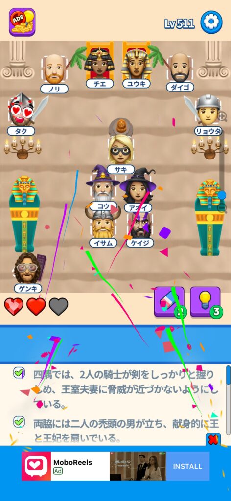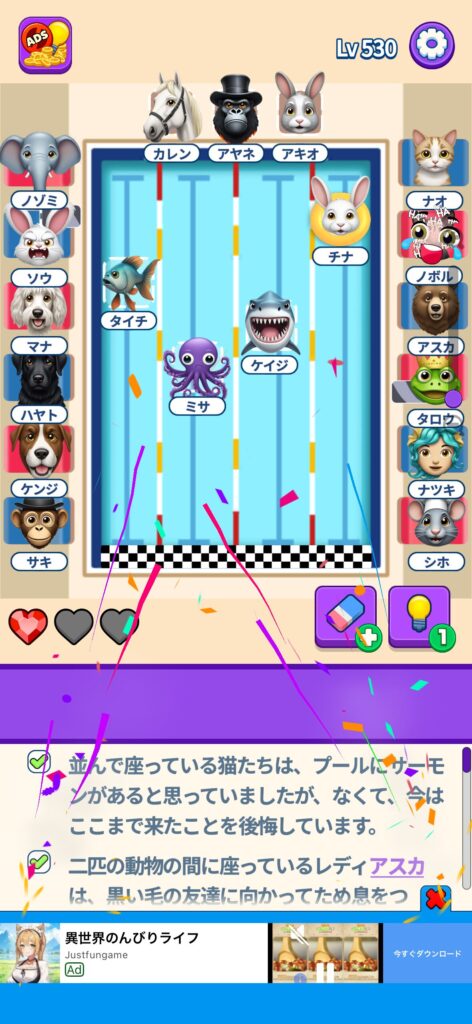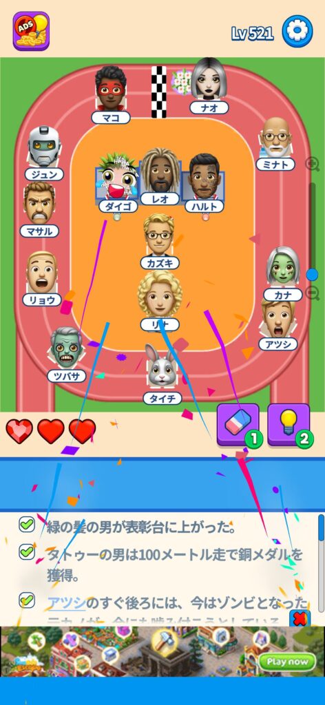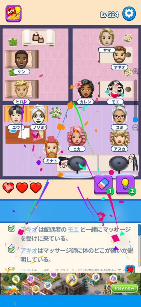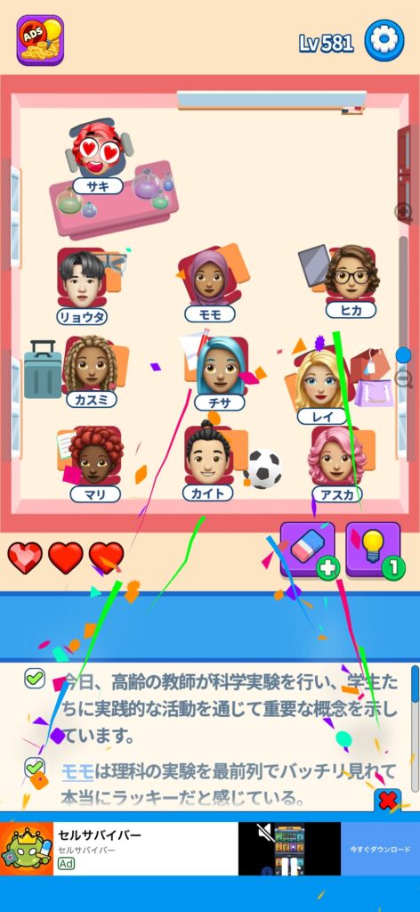 事ではゲームアプリ案件の「That’s My Seat」のLv.501~Lv.600のクリア画像をまとめています。